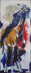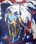 2011Olifant in expressief kleurgebruik en vlugge penseelstreken. In zwarte baklijst.
